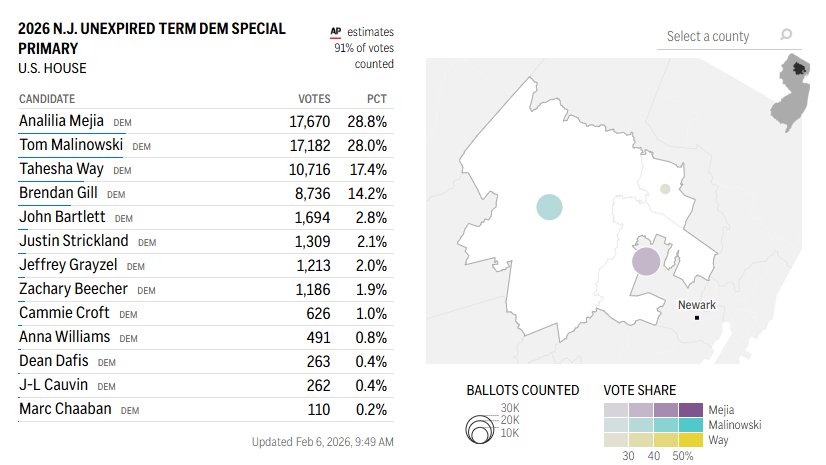 None of the 11 candidates in yesterday’s #NJ11 Dem primary currently has above 30% of the vote.