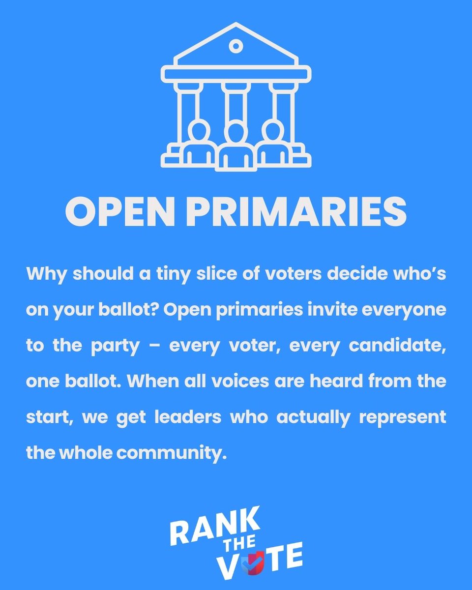 We’ve recently expanded what issues we’re focusing on for democratic reform to include proportional representation, fair maps, and open primaries. Here’s a brief explanation of each of our issues! Check out our website http://www.rankthevote.us for more info! #rankedchoicevoting